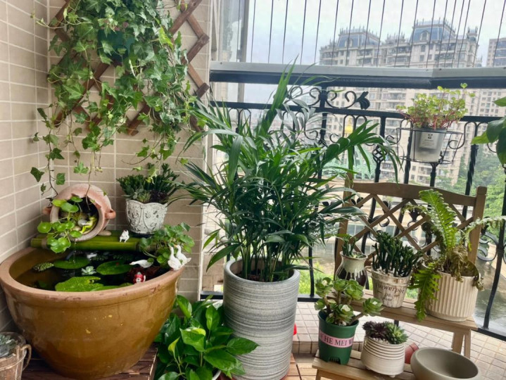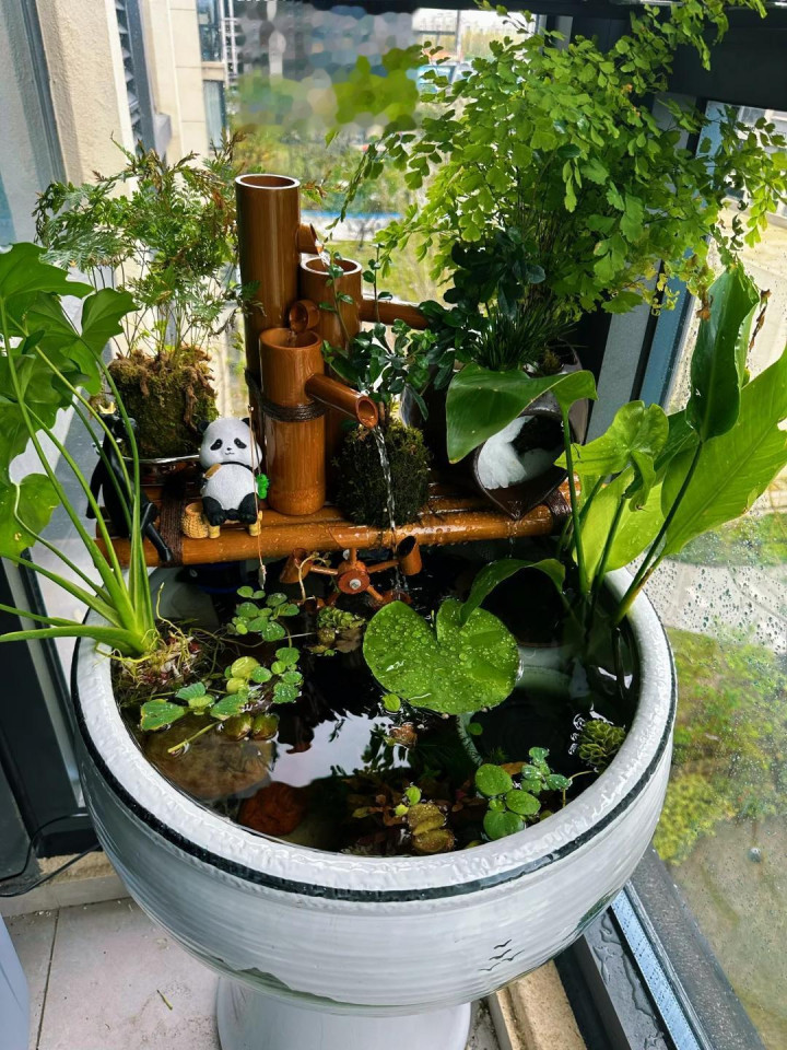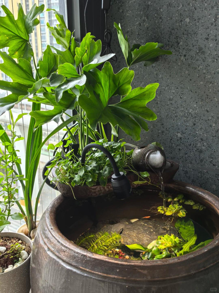 说到底,阳台上的水景,不是什么了不起的工程。一个陶缸,甚至一个旧木桶,都能用。关键是那股活水,一直在流,一直在响。
